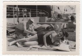 2-year old passenger on the SS UNITED STATES from New York to Le Havre, France to arrive in Santander, Spain. (1953)