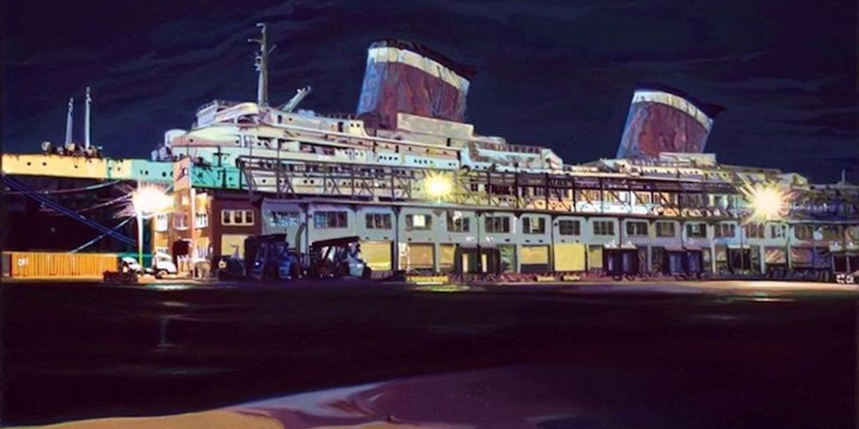 I first revisited the SS UNITED STATES in June 2012 in a ‘midnight ramble’ with old friends from WOMENSWORKS, an artist collective with whom I exhibited in the mid to late 70s. We visited again the following afternoon—both times viewing the ship through chain link fence.
